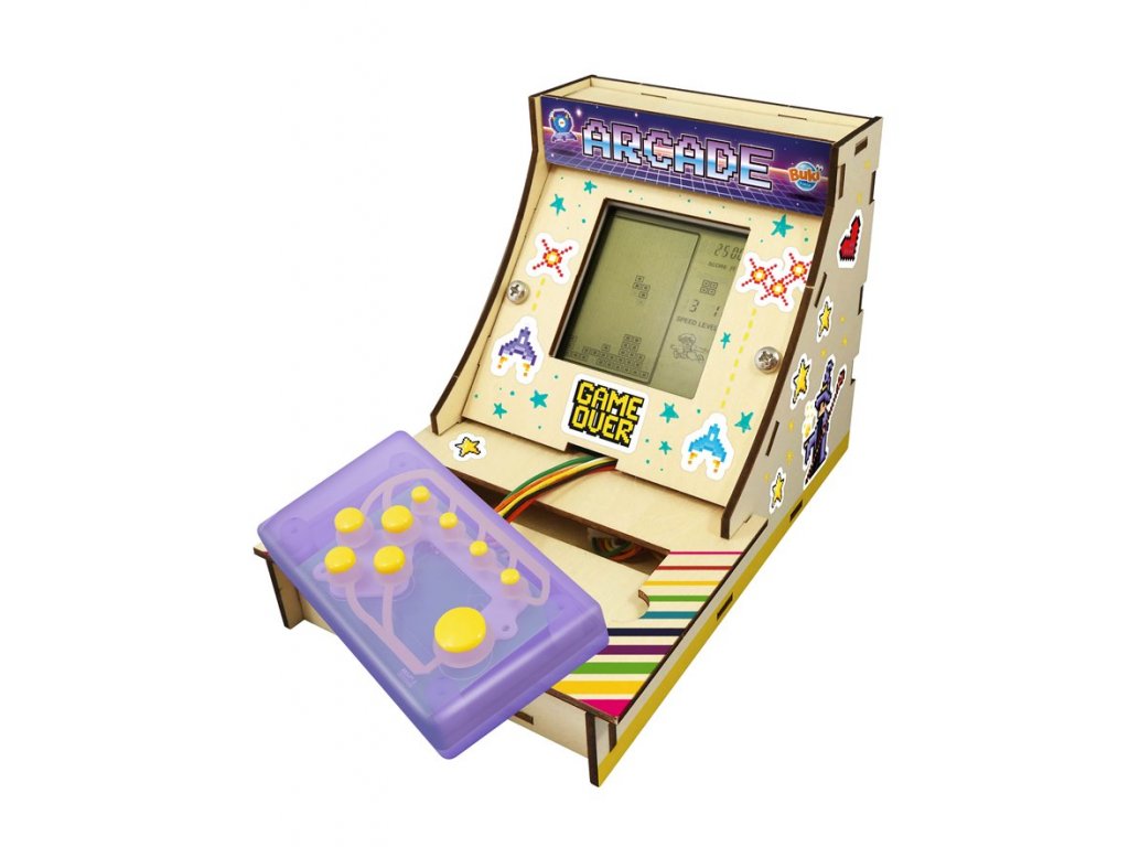 Arkádový herní automat je jedinečnou hračkou a stavebnicí v jednom. Potěší všechny kluky i holky, kteří si chtějí pohrát jako jejich vrstevníci v 80.letech dvacátého století. V dnešní době mobilů, tabletů a počítačů je tato "herní konsole" po stránce herní kvality jistě nesrovnatelná, ale tohle je tzv. KLASIKA. Kdo by si ještě dnes rád nezahrál třeba klasický tetris, jednoduchý tenis, bourání zdi či tankovou bitvu. Navíc pro lepší pocit ze hry si svůj arkádový automat sami sestavíte.