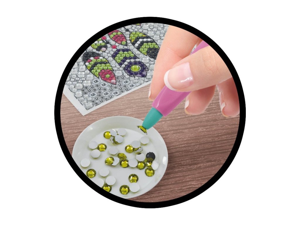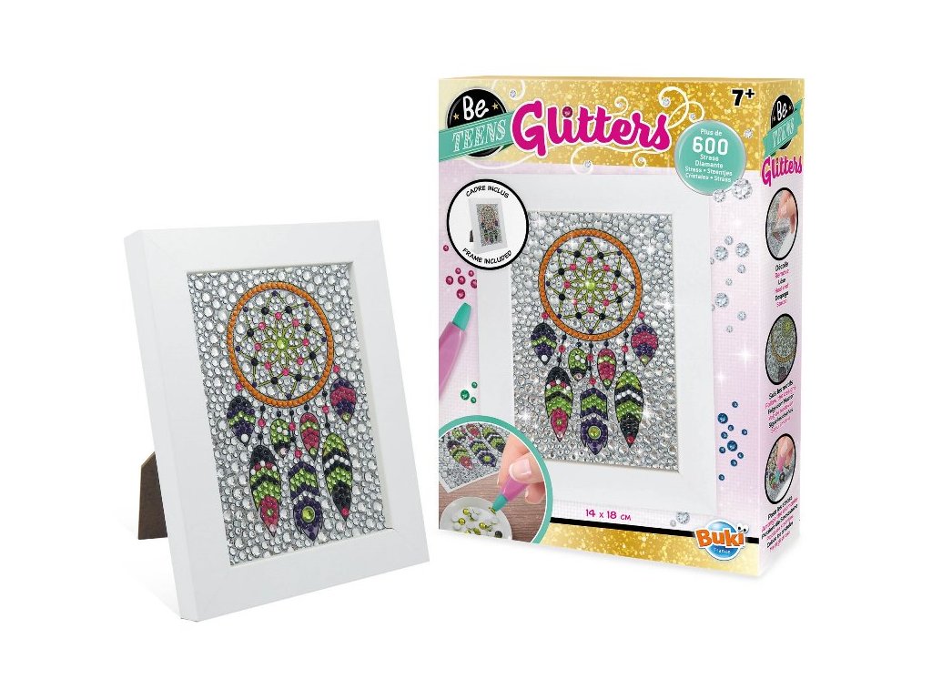 Sada GLITTERS obsahuje obrázek se samolepící vrstvou a šablonou s písmeny a čísly, přičemž každé písmeno/číslo představuje určitou barvu a velikost krystalku. Pomocí nástroje se pak krystalky umísťují na šablonu. Výsledný obrázek se vloží do rámečku a tvoří krásnou dekoraci.