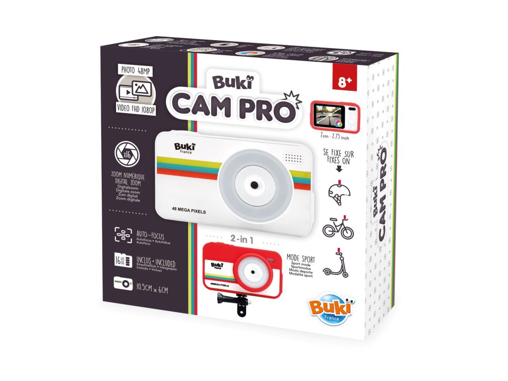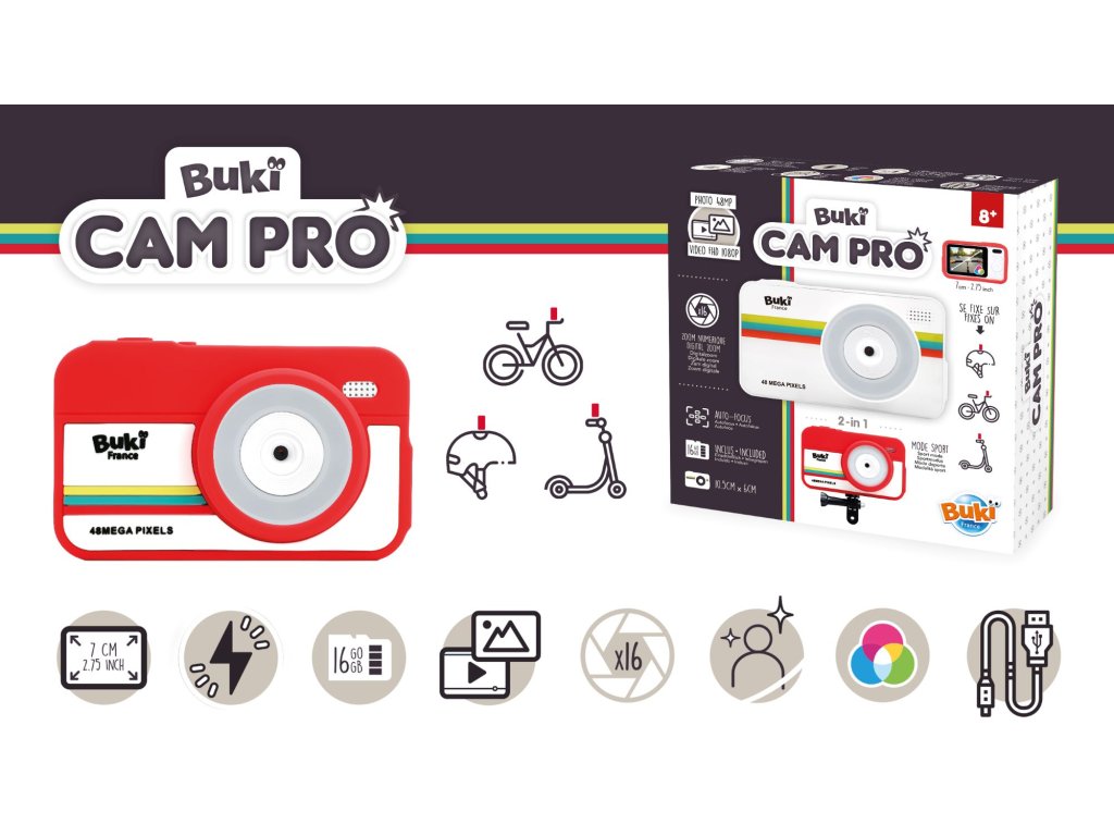BUKI CamPro je všestranná digitální kamera pro děti, která kombinuje robustní konstrukci s praktickými funkcemi pro každodenní dobrodružství. Vhodná jak pro domácí použití, tak pro venkovní výlety, díky přibaleným upevňovacím doplňkům ji lze snadno připevnit na helmu, kolo nebo skútr. Díky vysokému rozlišení, video kvalitě a odolnému krytu je ideální pro malé snílky a objevitele.