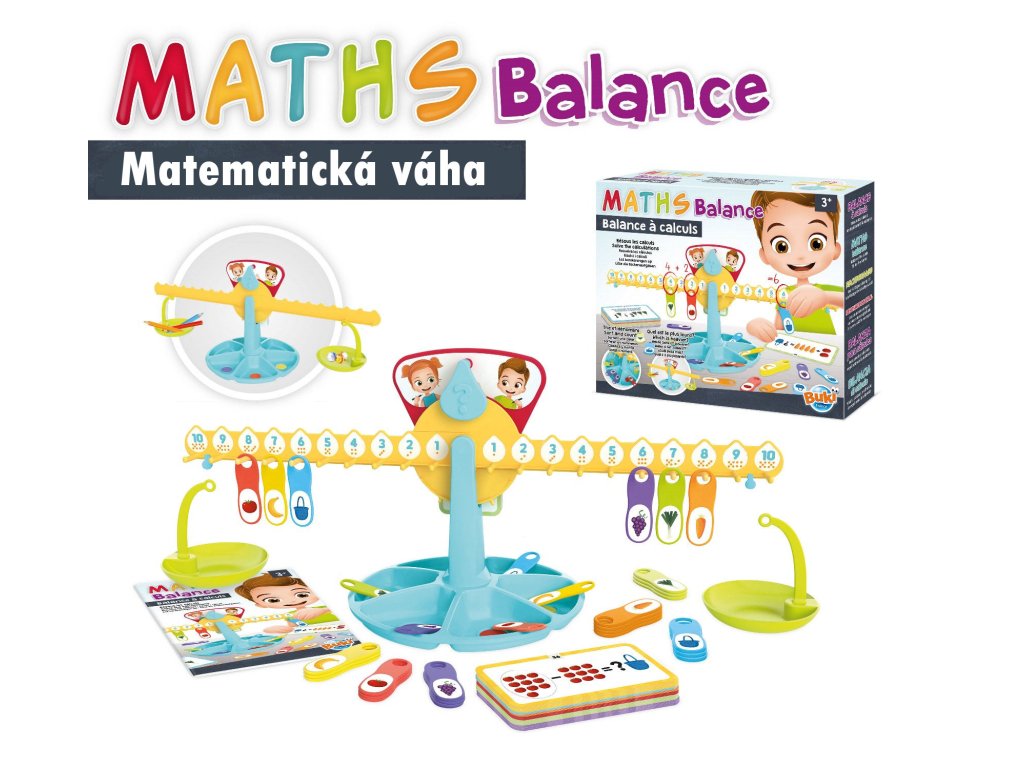 Hra BUKI Matematická váha je velmi zajímavý a poučný produkt pro děti, rodiče i pedagogy. Díky jednoduché a názorné hře s žetony na váze se děti naučí základní matematické operace (sčítání, odčítání, násobení a dělení). Při hře lze využít barevné, číselné nebo symbolické znázornění, což dává možnost nastavit si vlastní úroveň obtížnosti. Děti se aktivně zapojují do hry a hledají řešení buď vlastní logikou nebo postupným praktickým pochopením.