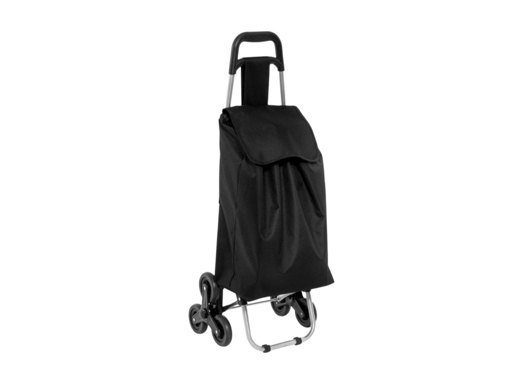 Hlavní předností vozíku je trojitý systém koleček na každé straně, který umožňuje plynulý pohyb po schodech a zajišťuje stabilitu i při plném zatížení. Pevná ocelová konstrukce v kombinaci s odolnou polyesterovou taškougarantuje dlouhou životnost a spolehlivost při každodenním používání.