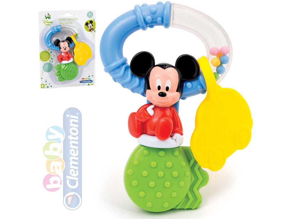Dětské chrastítko Mickey ve tvaru klíče a telefonu v jednom balení napomáhají smyslovému vývoji dítěte. Klíč se otáčí. Autíčko je vyrobeno z měkkého plastu vhodného na kousání.