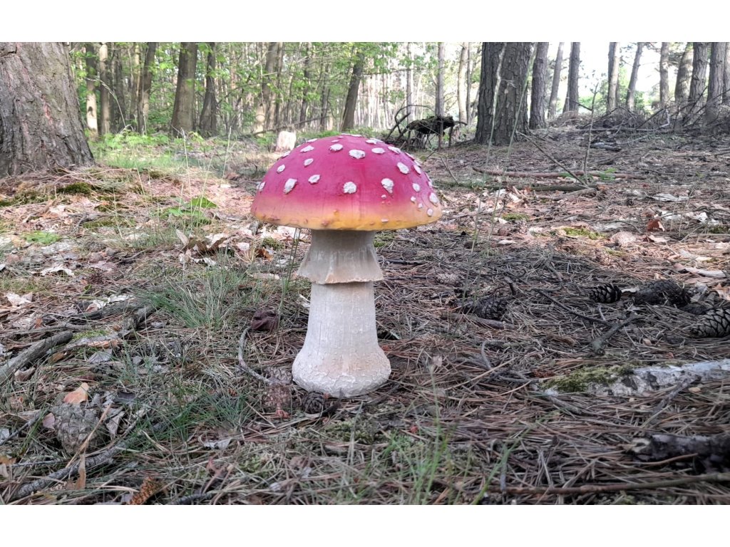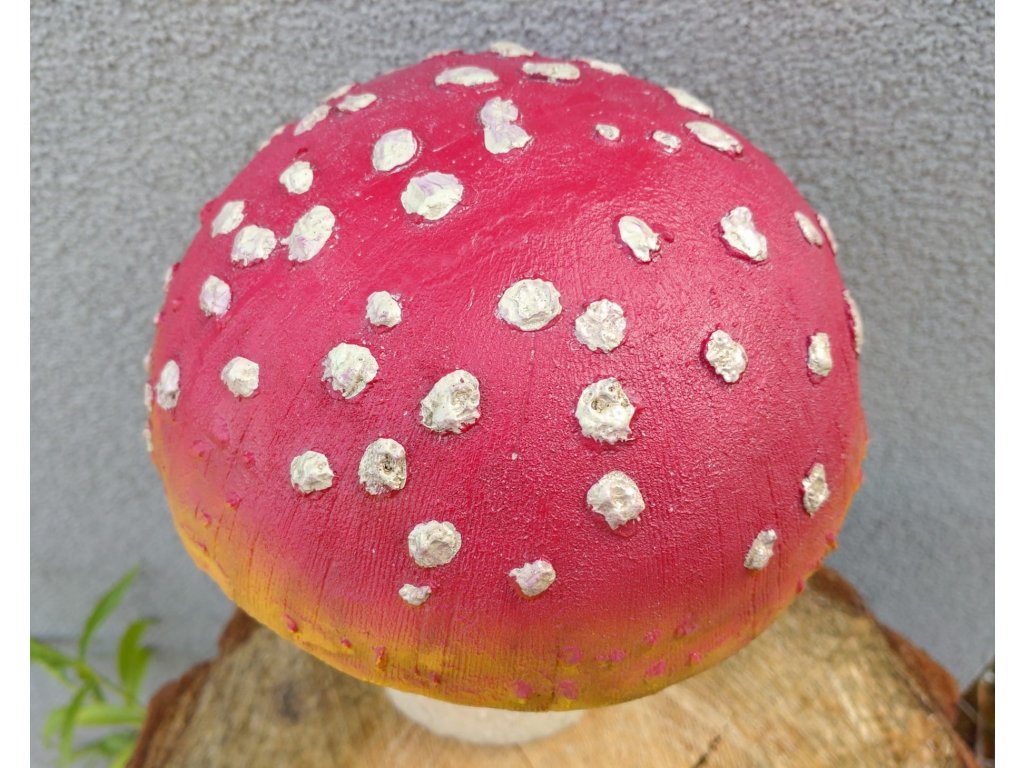 Dodejte svému domovu nebo zahradě kouzelný lesní nádech s touto velkou dekorativní muchomůrkou. Její syté barvy a realistické provedení z ní dělají výrazný prvek, který oživí každý prostor – ať už ji umístíte mezi květiny, na verandu, nebo do dětského pokoje.