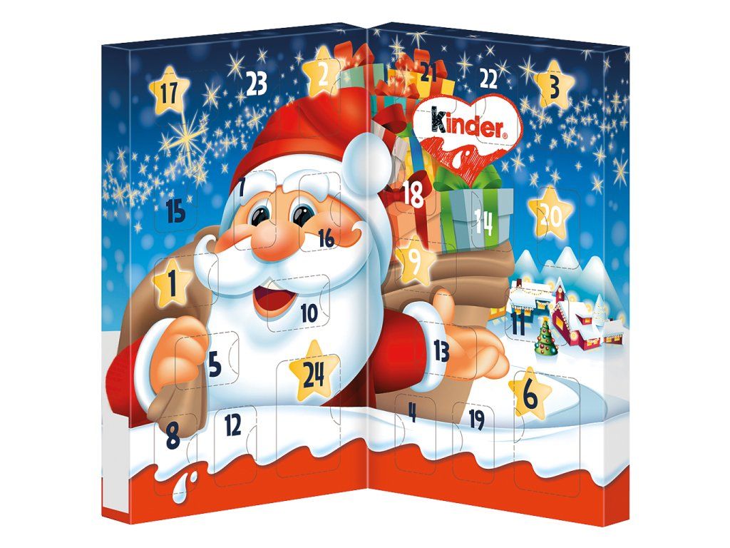 Jednoduše složit a nastavit. Adventní kalendář kinder Mix Table přináší na stůl sladkosti. Díky svému inovativnímu designu je možné jej nastavit okamžitě a každý den zaujme lahůdkami, jako jsou lískové ořechy kinder mini vejce (11 ×), mini vejce vejce kinder čokolády (11 ×) a vánoční tolarky kinder čokolády (2 ×).