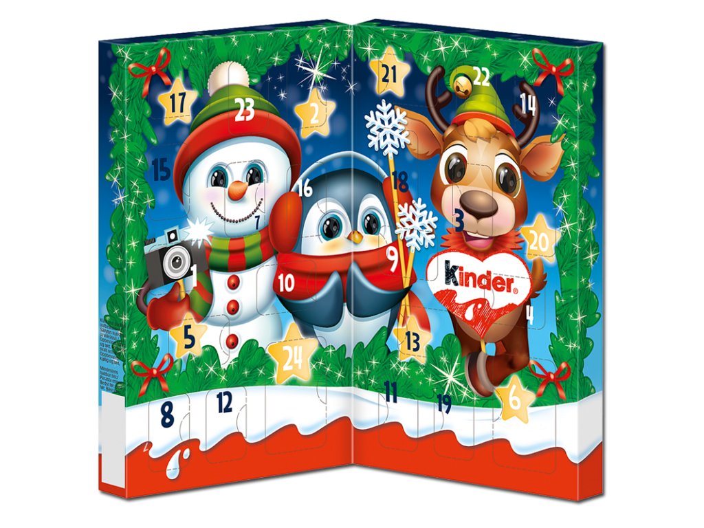 Jednoduše složit a nastavit. Adventní kalendář kinder Mix Table přináší na stůl sladkosti. Díky svému inovativnímu designu je možné jej nastavit okamžitě a každý den zaujme lahůdkami, jako jsou lískové ořechy kinder mini vejce (11 ×), mini vejce vejce kinder čokolády (11 ×) a vánoční tolarky kinder čokolády (2 ×).