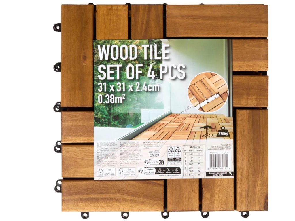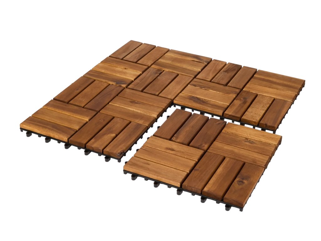 Dřevěné terasové dlaždice akácie – 4 ks | 31 x 31 x 2,5 cm