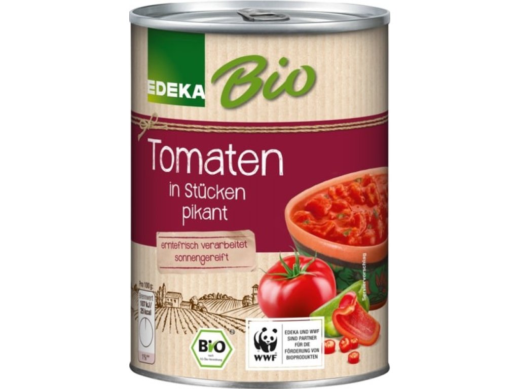 Edeka BIO rajčata, na kousky, pikantní 400g