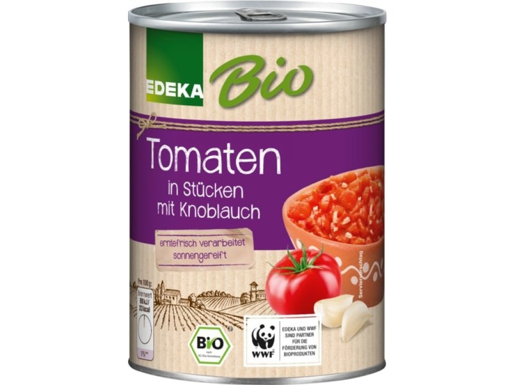 Edeka BIO rajčata, na kousky s česnekem 400g