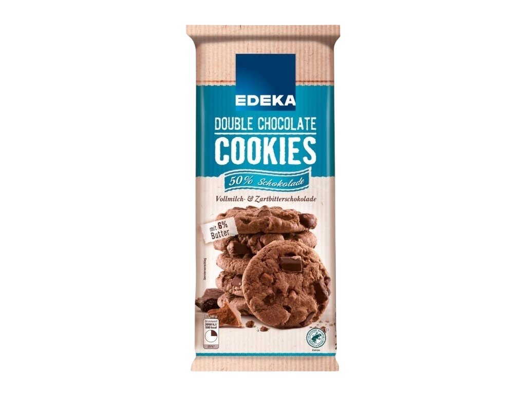 Dvojitá čokoláda: Edeka Double Chocolate Cookies obsahují mléčnou čokoládu a hořkou čokoládu, což je činí ideální volbou pro milovníky intenzivní čokoládové chuti. 50 % čokolády zaručuje, že každé sousto bude naplněné čokoládovým potěšením.