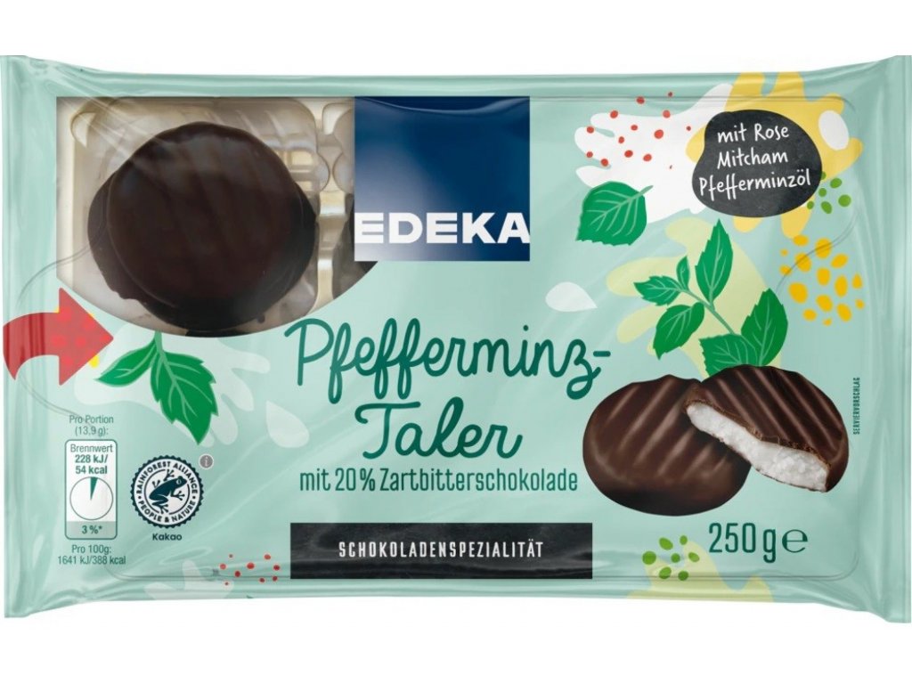 Edeka Mátové koláčky v jemně hořké čokoládě 250g