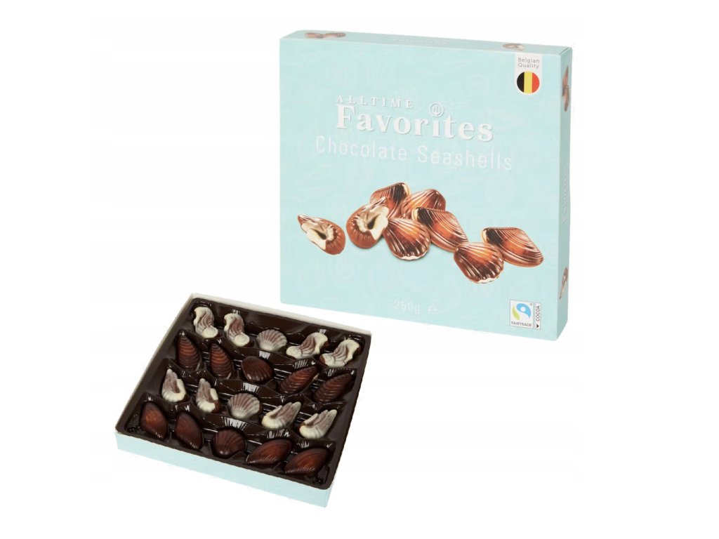 - Obsahují vynikající mléčnou čokoládu z Belgie – země proslulé nejkvalitnější čokoládou na světě. Tyto čokolády mají tvar mořských plodů, což jim dodává ještě větší kouzlo a originalitu.