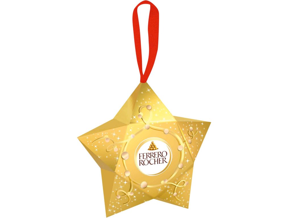Ferrero Rocher Little Star je ideálním suvenýrem na vánoční období. Zlatá hvězda uvnitř ukrývá pralinky z mléčné čokolády, které jsou plněné nugátovým krémem a v jádru mají celý lískový oříšek. Se svým praktickým závěsným zařízením skvěle ozdobí vánoční stromeček a uvnitř se dá svačit během zdobení.