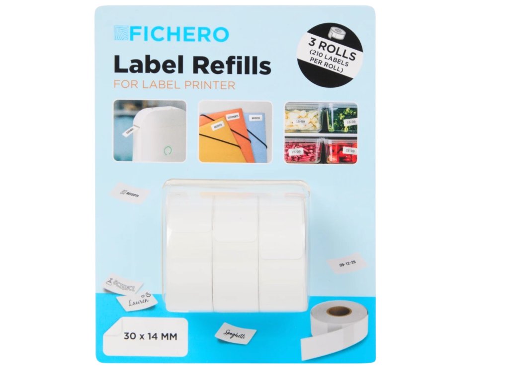 Tyto doplňovací role do tiskárny štítků Fichero jsou perfektním doplňkem pro každého, kdo chce tisknout ještě více štítků bez potřeby nového papíru hned po prvním vytištění. Balíček obsahuje 3 role etikety o rozměru 30 × 14 mm, které jsou ideální pro použití s bezdrátovou tiskárnou štítků Fichero. Každá role obsahuje až 210 štítků, takže můžeš jednoduše označit věci v domácnosti, kanceláři, v kuchyni nebo při organizaci různých předmětů.