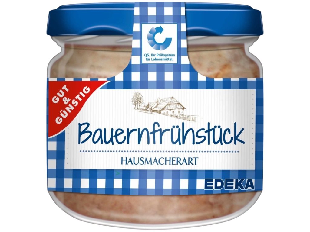 Užijte si vydatnou domácí farmářskou snídani Gut&Günstig, hrubozrnnou a vyrobenou ze 75 % vepřového masa, balenou v 250g sklenici! Toto vydatné jídlo je opravdovým potěšením pro milovníky vydatných snídaní nebo večeří.