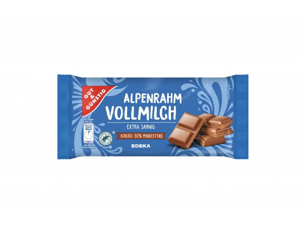 Čokoláda patří mezi nejoblíbenější cukrovinky. Pokud rádi mlsáte, nenechte si ujít G&G mléčnou čokoládu z alpského mléka. Jakmile ochutnáte první kostičku této sametově jemné čokolády, podlehnete pokušení a nebudete se chtít dělit. Extra krémová mléčná čokoláda G&G obsahuje podíl kakaového másla, alpského mléka a smetany. Čokoláda vyrobená v Německu si získá srdce dětí a mlsounů, kteří nedají dopustit na poctivou mléčnou čokoládu.