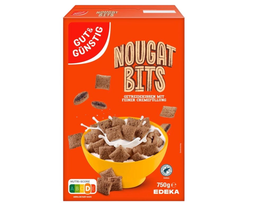 Složení: 58% obiloviny (38% PŠENIČNÁ mouka, cukr, 18% celozrnná mouka, 9% kukuřičná mouka, 4% celozrnná rýžová mouka, 3% nízkotučný kakaový prášek, sůl), 42% nugátová náplň (cukr, rostlinné oleje (palmový, řepkový), 10% drcené LÍSKOVÉ OŘECHY, PŠENIČNÁ mouka, 4% nízkotučný kakaový prášek, emulgátor: lecitin, přírodní aroma). Výrobek může obsahovat stopy ARAŠÍDŮ, MLÉKA a SKOŘÁPKOVÉho ovoce.