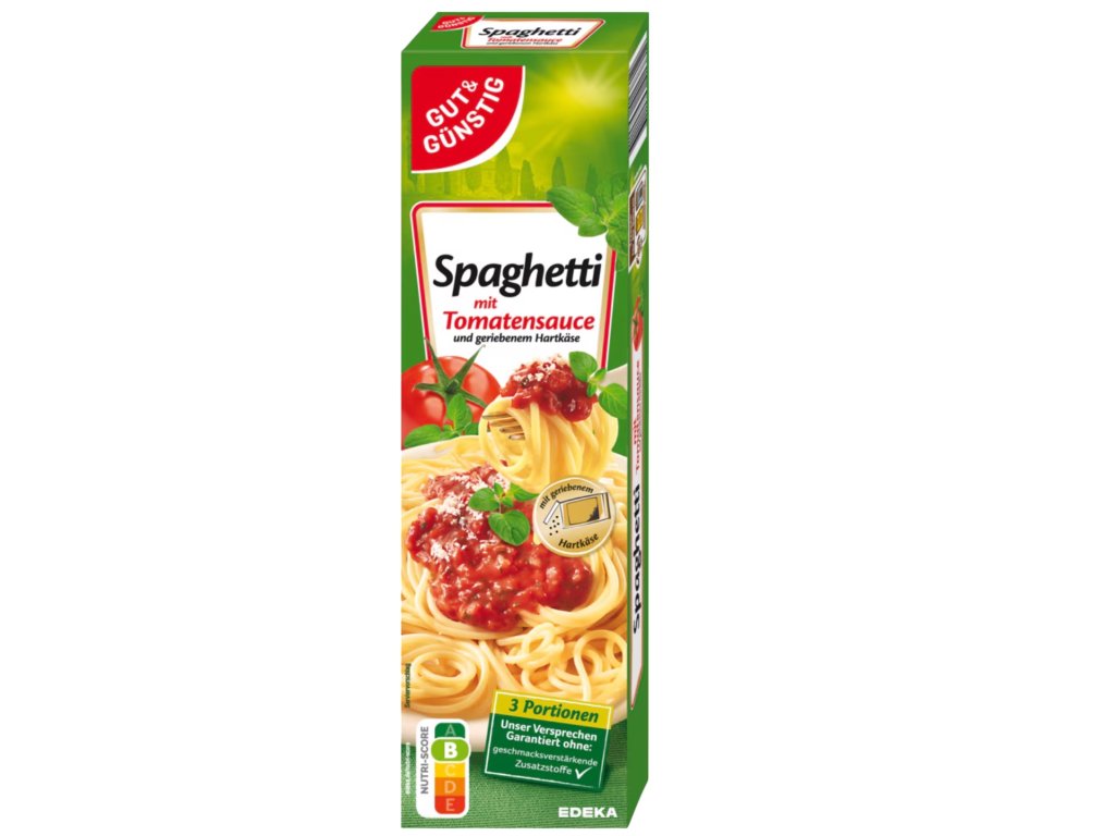 Složení: 63 % těstoviny (krupice z tvrdé pšenice), 28,7 % dvojitě koncentrovaný rajčatový protlak, 4,5 % kořenící směs (jodizovaná kuchyňská sůl [kuchyňská sůl, jodičnan draselný], cukr, sušená cibule, pšeničná mouka, maltodextrin, bylinky, koření, česnekový prášek, slunečnicový olej, potravinářské barvivo: prášek z červené řepy; extrakty z koření), 3,8 % strouhaný sušený tvrdý sýr. Výrobek může obsahovat stopy vajec, hořčice a sóji.