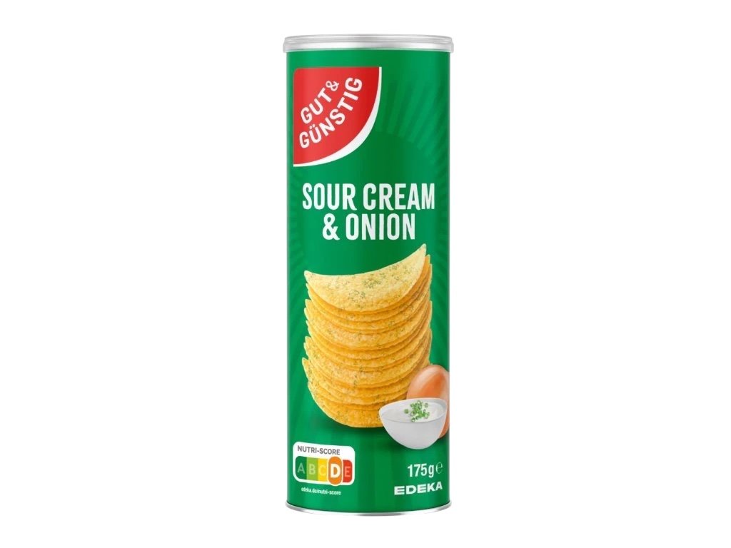 G&G Stapelchips Zakysaná Smetana & Cibule 175 g je skvělá volba pro všechny milovníky chutného a křupavého snacku. Tyto bramborové chipsy jsou vyrobeny z kvalitních brambor a ochuceny jemnou sour cream-onion (zakysaná smetana a cibule) příchutí, která zaručuje jedinečný chuťový zážitek. Díky použití slunečnicového oleje jsou chipsy lehčí a zdravější volbou pro vaše chutě.