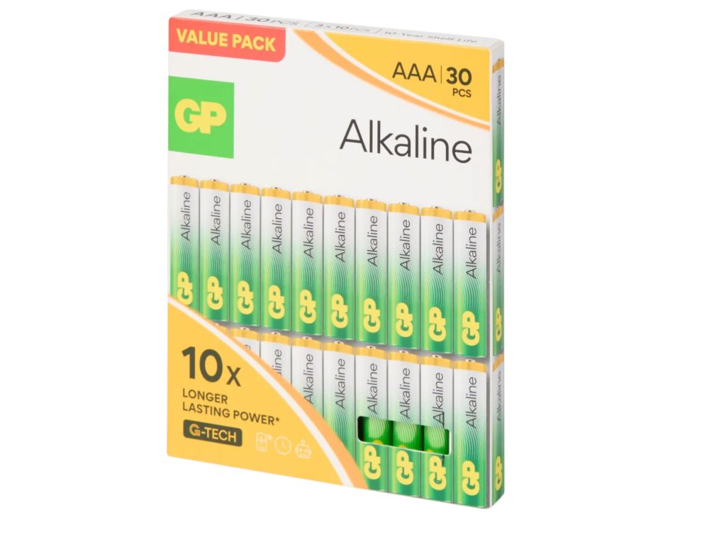 Udržujte svá zařízení v provozu s praktickým balením 30 kusů alkalických baterií GP AAA (LR03, 1,5 V). Ideální řešení pro domácnost, kancelář i volný čas, kdy potřebujete spolehlivou energii pro dálkové ovladače, hodiny, hračky, svítilny či senzory.