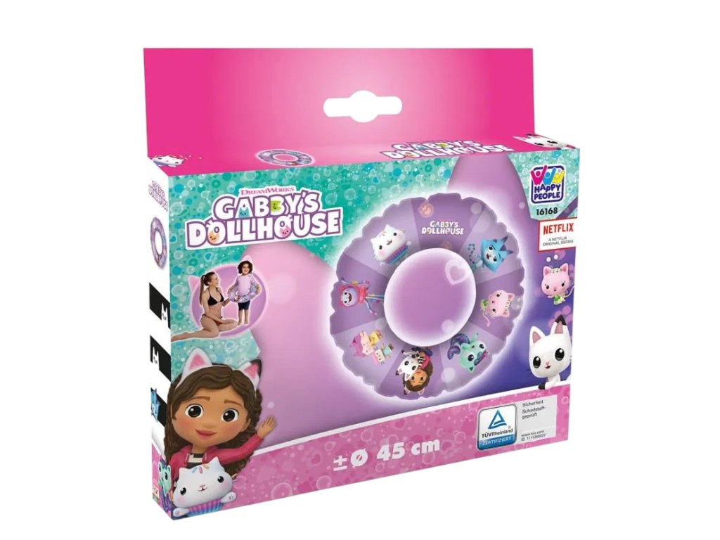 Gabby's Dollhouse plavecký kruh, nafouknutý cca. 45 cm, vyfouknutý cca. 50 cm.