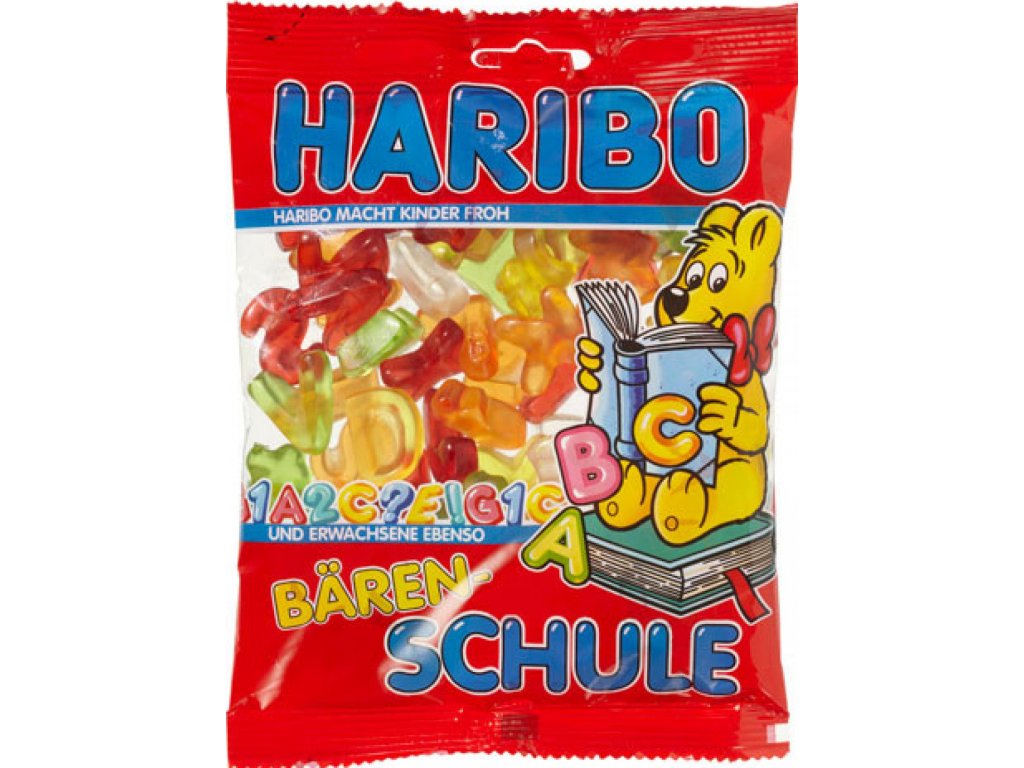 Bonbóny Haribo. Sáček plný písmen a číslic.