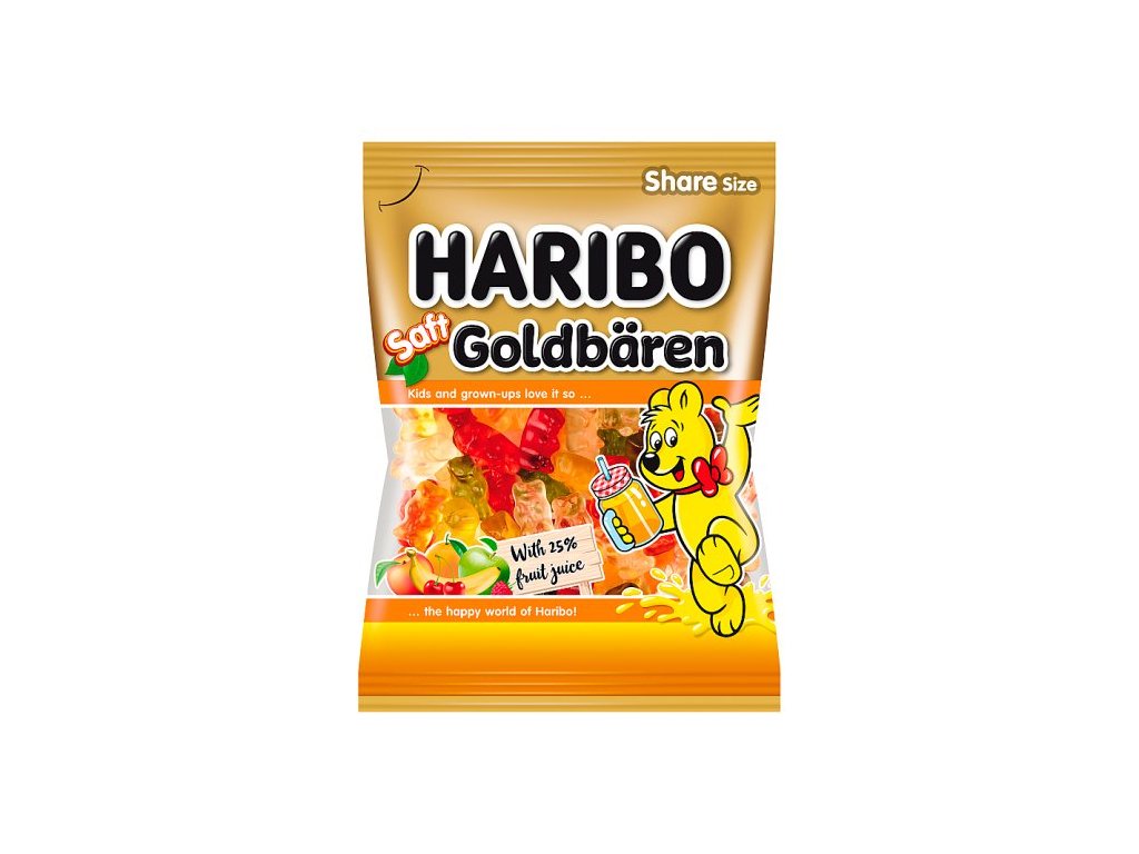 Haribo Goldbären Saft želé medvídci s 25% ovocné šťávy z koncentrátů.
