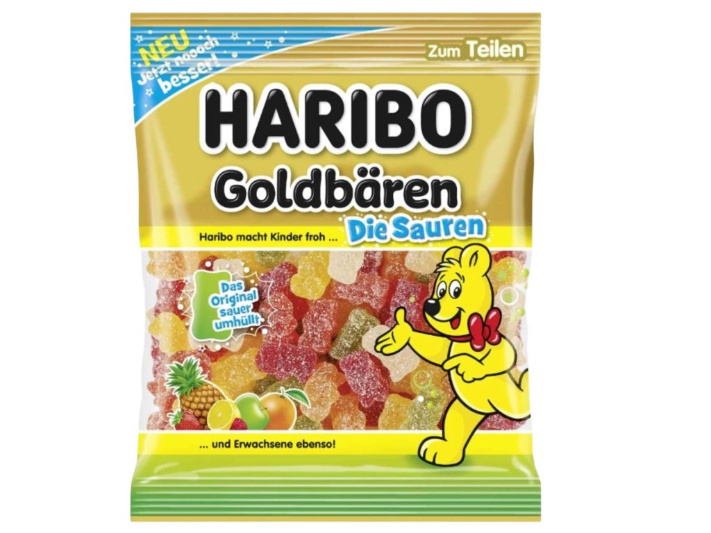 🐻 Oblíbená kyselá varianta ikonických Haribo medvídků – sladké uvnitř, pikantní navenek.