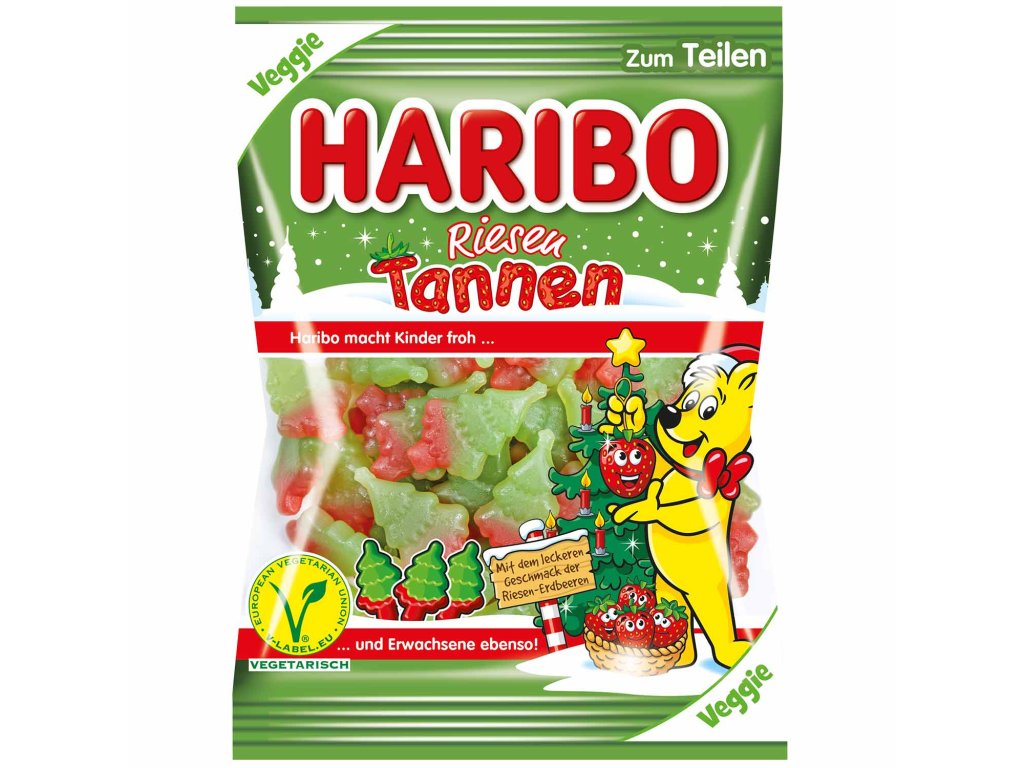 Obrovská lahůdka na Vánoce. Lahodné obří jedle Haribo jsou v prosinci zábavné. Velké jedle jsou 100% vegetariánské a chutnají nádherně ovocně jako jahody. Zimní vzhled vytváří skvělou vánoční atmosféru.