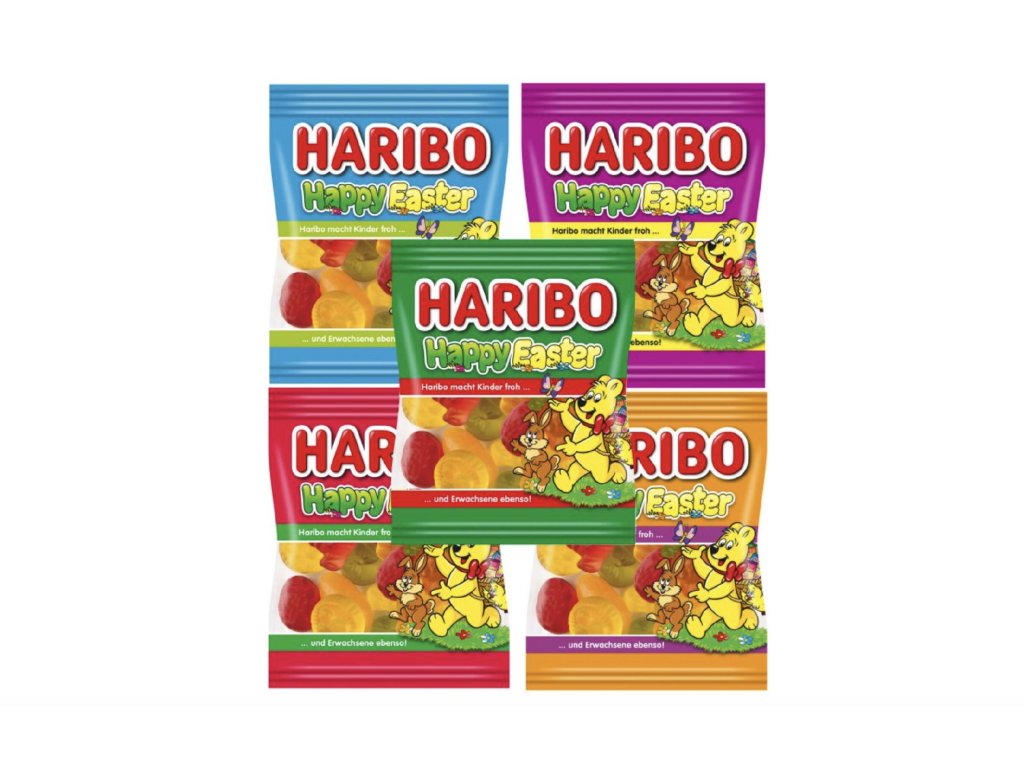 Minikapsičky Haribo Happy Easter jsou barevně naplněné zábavnými velikonočními figurkami z ovocných žvýkaček a vajíček dražé. Praktické mini sáčky jsou naplněny lahodnými ovocnými žvýkačkami s jarními motivy v příchutích ananas, pomerančový džus, citron, jahoda, malina nebo karamel. Jsou ideální jako dárek nebo jako malý dárek do velikonočního hnízda.