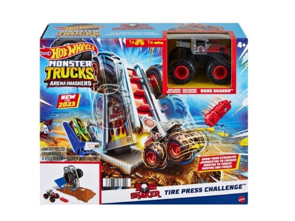Připrav se na pořádnou dávku adrenalinu s arénou Hot Wheels® Monster Trucks – Závodní výzva BONE SHAKER. Tento akční herní set přenese děti přímo do světa drtivých nárazů, kaskadérských kousků a soutěžních výzev, kde vládnou monstrózní trucky.