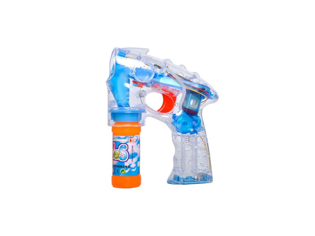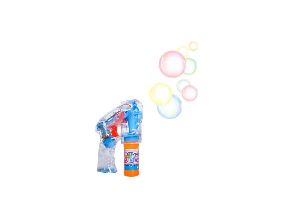 Bublifuková pistole se světelnými a zvukovými efekty, která oslní děti nádhernými bublinami. Do bublifukové pistole vložte baterie a našroubujte nádobku s roztokem, stiskněte spoušť a pozorujte překrásnou světelnou i zvukovou show. Po vyčerpání originální náplně lze elektrický bublifuk použít s jakoukoliv náhradní náplň určenou pro bublifuky.