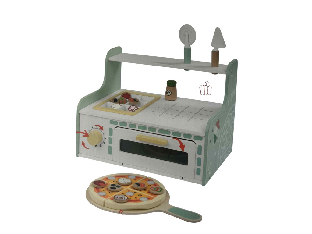Připravte si vlastní dřevěnou pizzu! Tato hrací sada obsahuje pizza podnos, špachtle, řezačku a různé dřevěné přísadyjako žampiony, cibuli, papriku nebo olivy. Díky suchým zipům lze jednotlivé ingredience snadno připnout a odpojit, takže děti mohou tvořit různé kombinace. Set podporuje kreativní hraní rolí, fantazii a jemnou motoriku a poskytuje zábavu pro malé pizzaioly od 2 let.