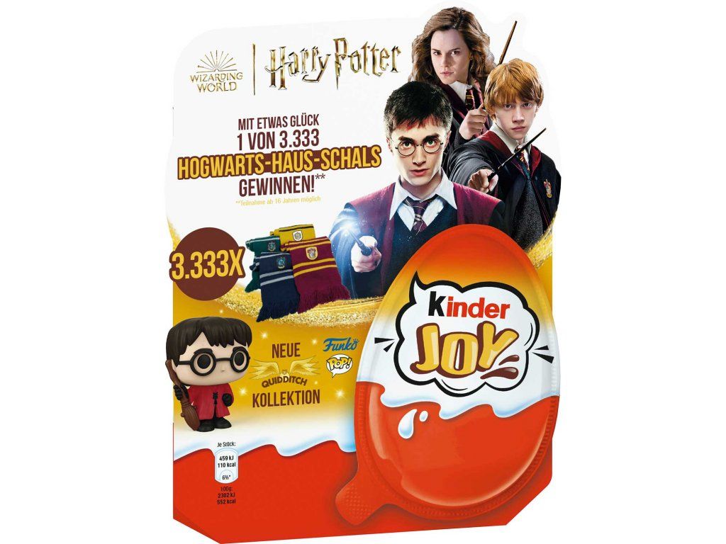 Kinder Joy Harry Potter je zpět a tentokrát je plné magické horečky. Kinder JOY se jako vždy skládá ze dvou polovin: na jedné straně je lahodný mléčný a oříškový krém se 2 křupavými kuličkami na lžičkou, na druhé polovině je velké překvapení z univerza Harryho Pottera. Požitek a zábava zároveň.