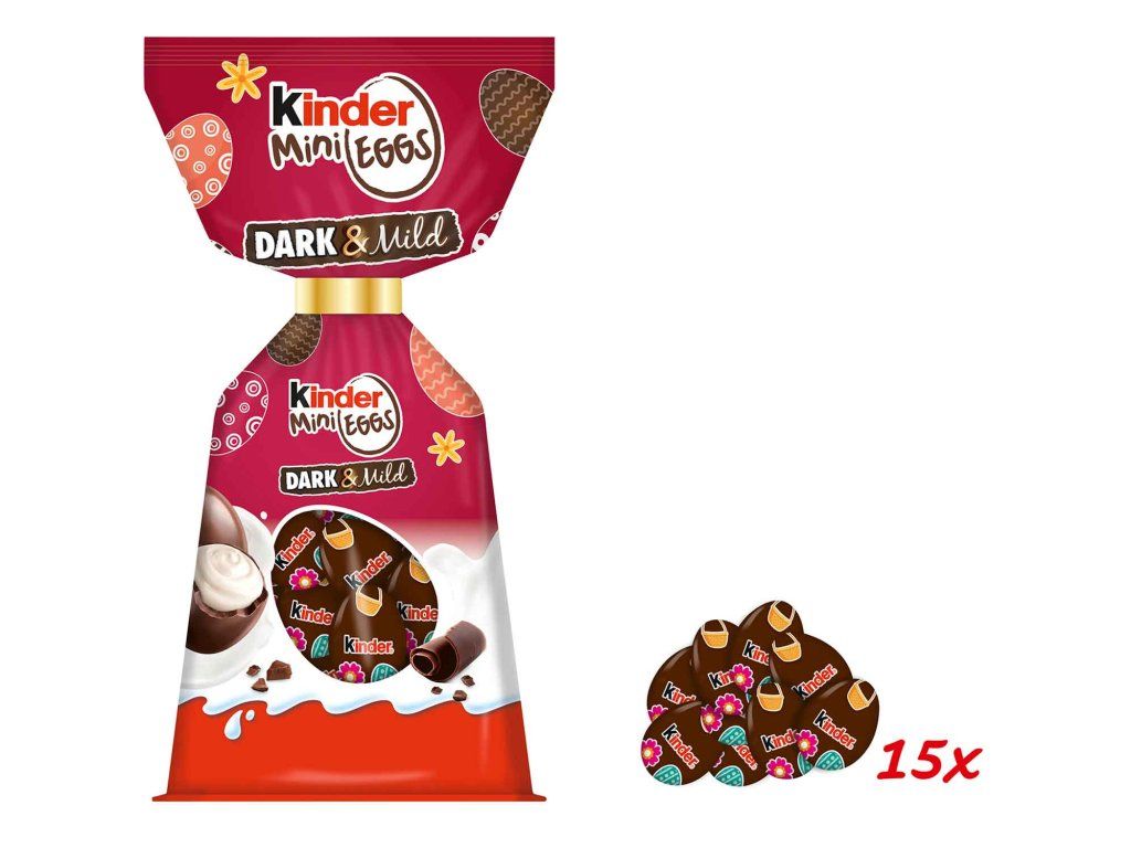 Malá lahůdka, velká radost: Kinder Mini Vejce tmavé a mírné Velikonoce jsou lahodnou svačinou pro každého. Lahodná mini vajíčka z hořké čokolády zaujmou lahodnou mléčnou krémovou náplní a skvěle se hodí do velikonočního košíku i na sladký velikonoční stůl.