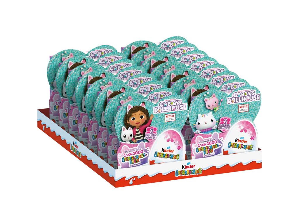 Tato speciální edice rozechvěje malá srdíčka! Zde je sada čtyř exkluzivních růžových vajíček Kinder Surprise. Tato vajíčka zdobená růžovými květy jsou určena speciálně pro holčičky – a kromě lahodných pamlsků zaručeně obsahují 2 z 8 fantastických sběratelských figurek Gabby's Dollhouse. Nechte se překvapit, která Barbie se skrývá uvnitř vašeho vajíčka. Užijte si rozbalování a pochutnávání si na pamlscích!