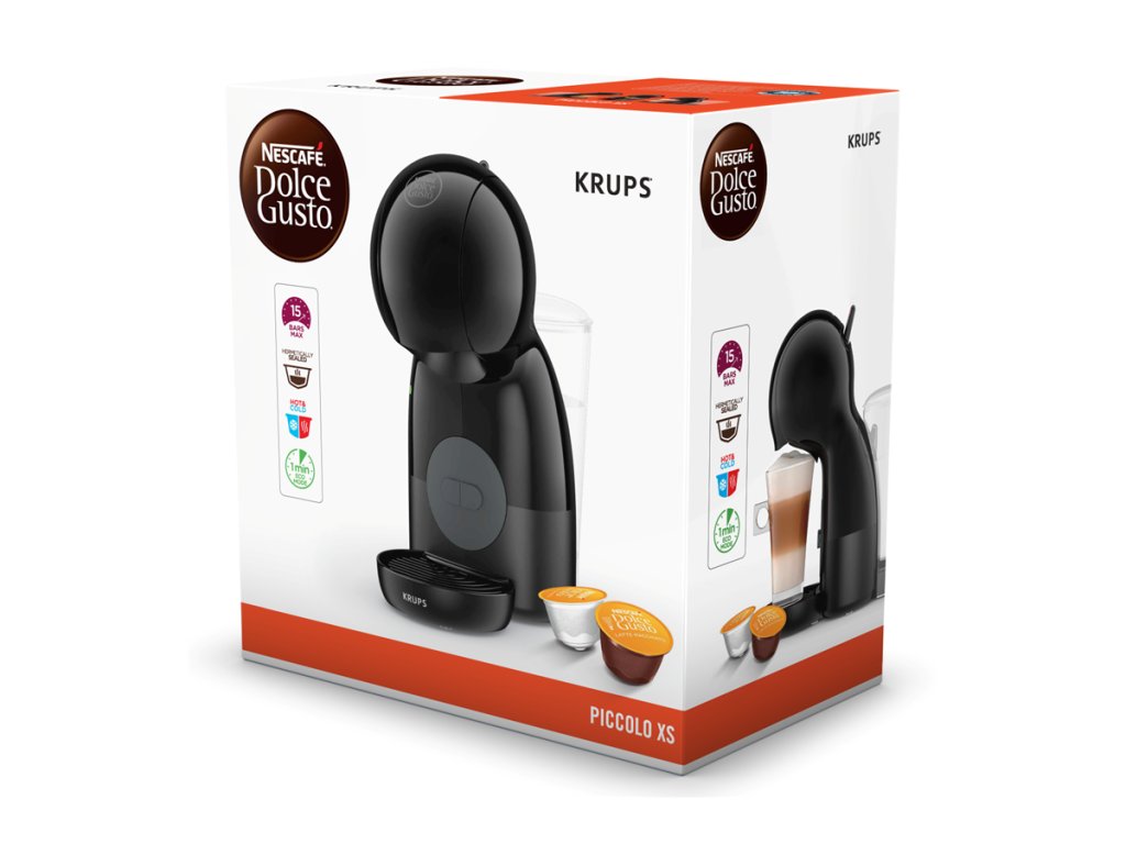 Krups Nescafé Dolce Gusto Piccolo XS KP1A3B10 je kompaktní kapslový kávovar, který v sobě kombinuje jednoduché ovládání, stylový design a možnost přípravy kvalitní kávy i dalších nápojů přímo v pohodlí domova. Díky kapslovému systému NESCAFÉ Dolce Gusto si můžete vychutnat více než 30 různých nápojů – od espressa až po horkou čokoládu či ledovou kávu.