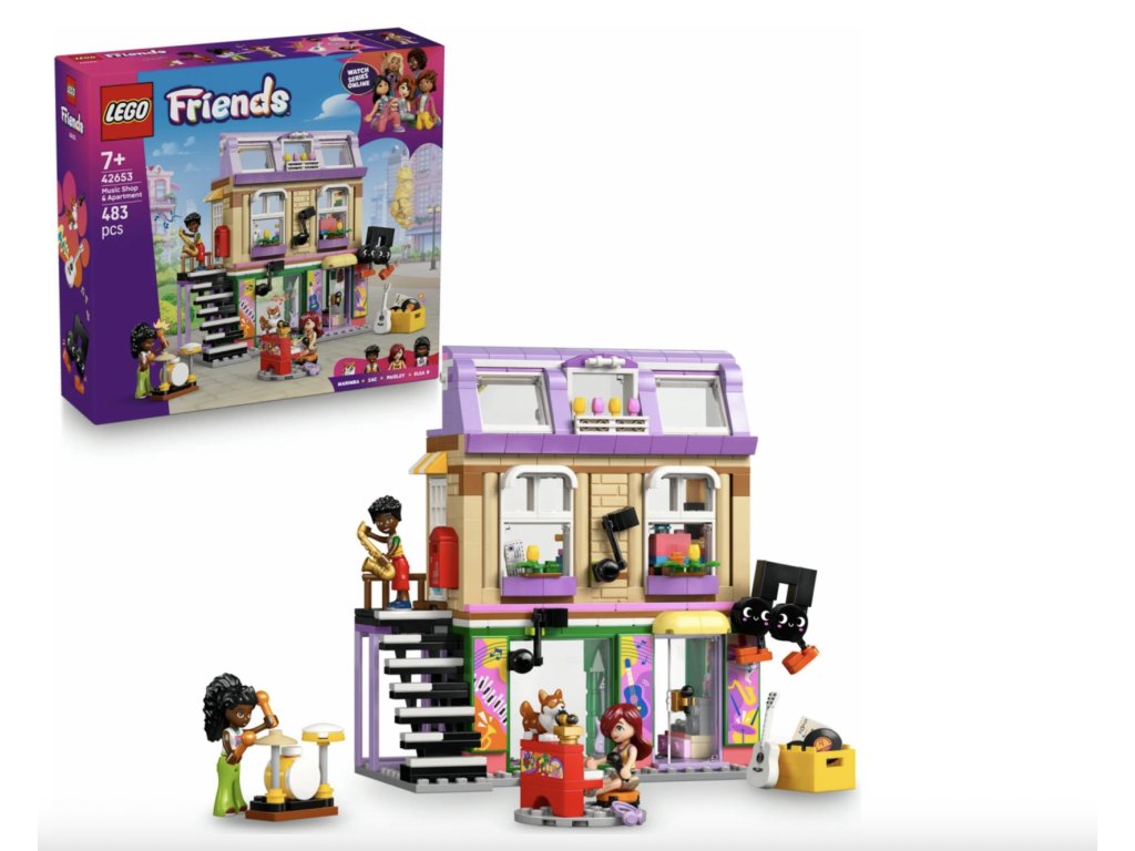 Objevte svět hudby, kreativity a přátelství se stavebnicí LEGO® Friends Hudební obchod a byt, která nadchne děti od 7 let. Barevný dvoupatrový model spojuje rušný hudební obchod s útulným bytem a nabízí spoustu možností pro tvořivé hraní rolí.