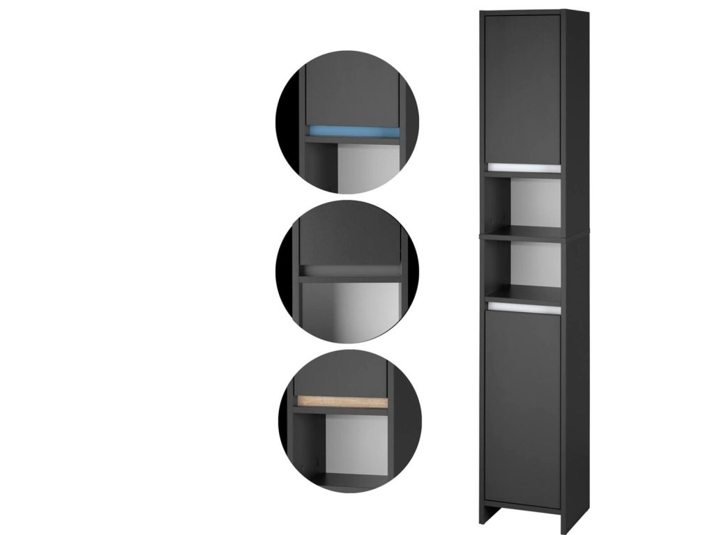 Díky své štíhlé konstrukci a nastavitelným policím je skříň vhodná i do menších koupelen, toalety nebo dokonce technických místností, kde je třeba využít dostupný prostor efektivně.