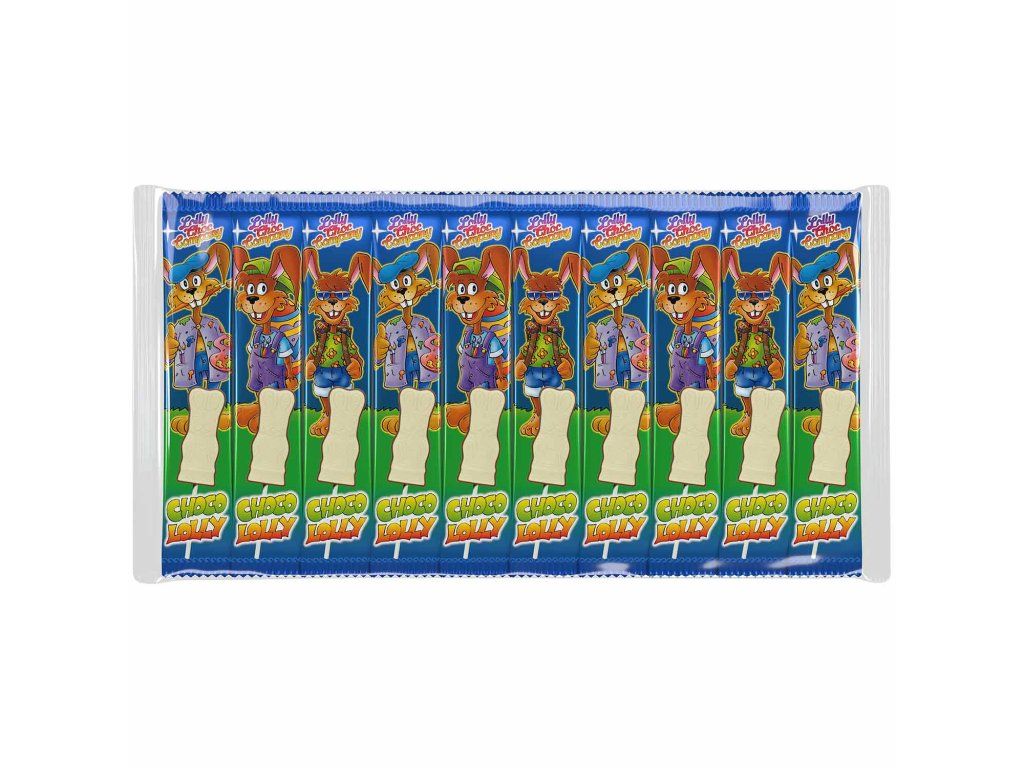 Velikonoční zajíčci na špejli Choco-Lolly jsou o Velikonocích hitem malých i velkých. Lahodná lízátka předvádějí svou chutnou stránku jako roztomilí velikonoční zajíčci. Bílá a plnotučná mléčná čokoláda spojují svou lahodnou chuť a poskytují vám potěšení z mlsání, které si můžete vychutnat snadno a bez čokoládových prstů díky praktické rukojeti. Lízátka jsou cca. 14 cm vysoký.
