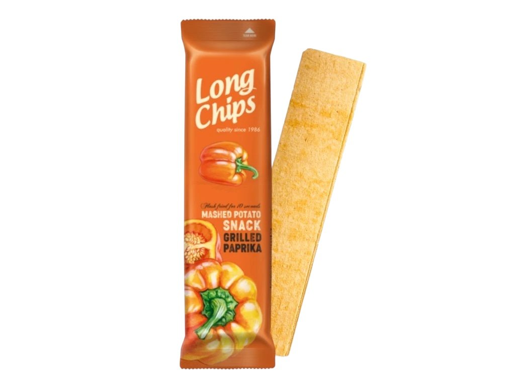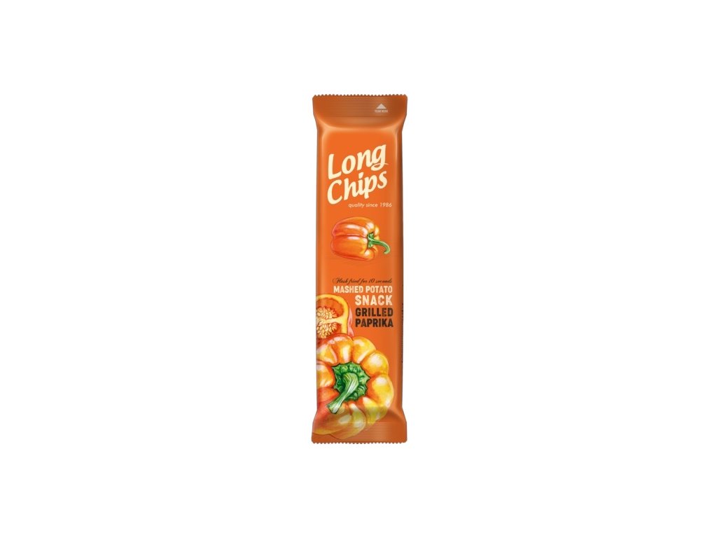 Užijte si výjimečný chuťový zážitek s Long Chips – extra dlouhými a křupavými bramborovými lupínky s lahodnou příchutí grilované papriky. Sladká a jemně kouřová chuť papriky dodává těmto chipsům neodolatelný charakter, který si zamilujete už po prvním soustu.