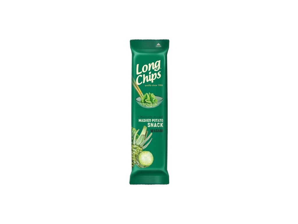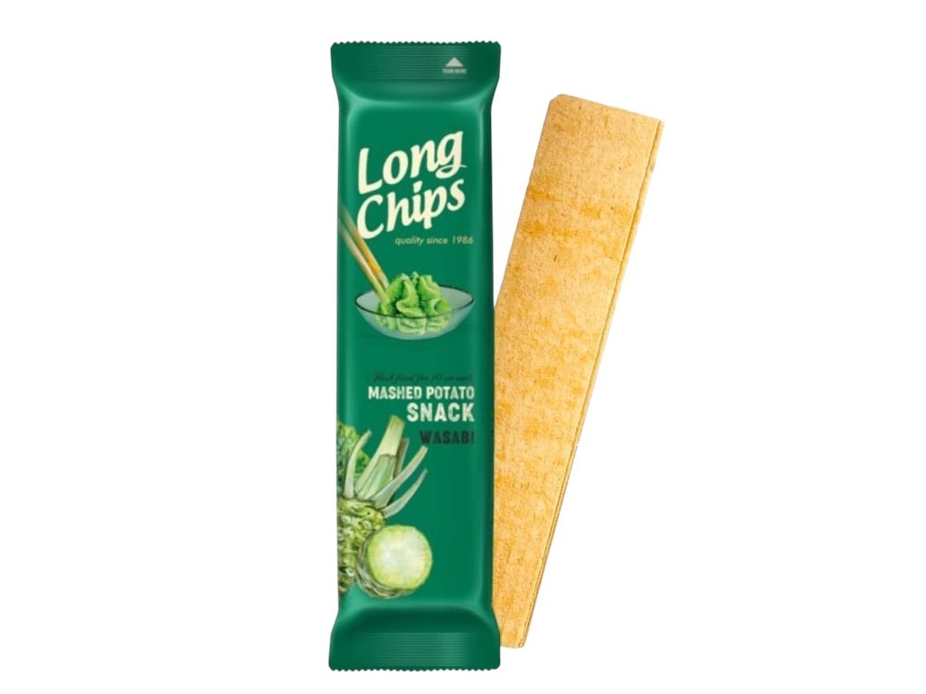 Máte rádi pálivé a netradiční chutě? Pak je tu něco přesně pro vás! Long Chips Wasabi přináší neotřelou kombinaci extra dlouhých, tenkých a křupavých bramborových lupínků s výraznou chutí japonského wasabi. Ostré, svěží a návykové – ideální pro všechny, kdo se nebojí odvážnějších snacků.