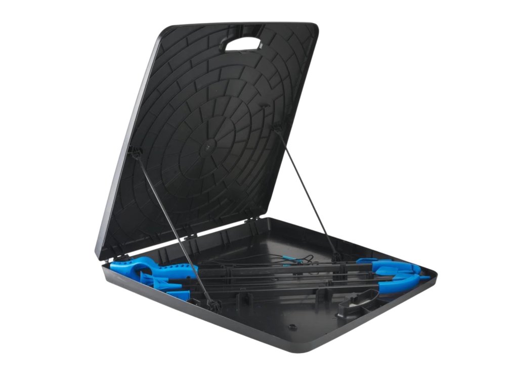 Praktický úložný box nejen bezpečně uchová celé vybavení, ale po otevření se během chvilky promění v samonosný terč. Jednoduché nastavení vám umožní začít hrát téměř okamžitě – doma i na zahradě.
