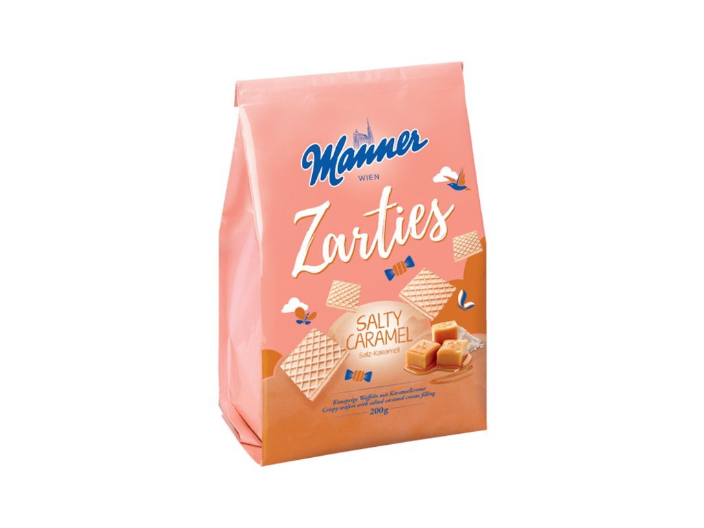 Křupavé oplatky Manner s karamelovo (slanou)-krémovou náplní, balení 200g.