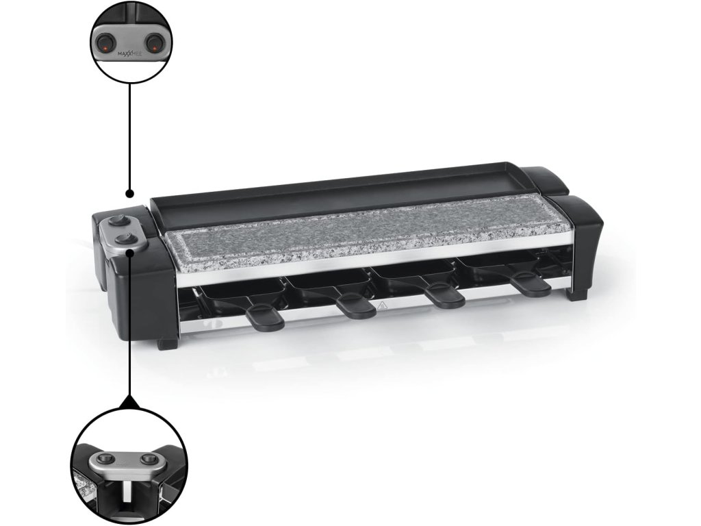 MAXXMEE Raclette gril pro 8 osob, 1100 W, Grilovací deska z přírodního kamene a litého hliníku