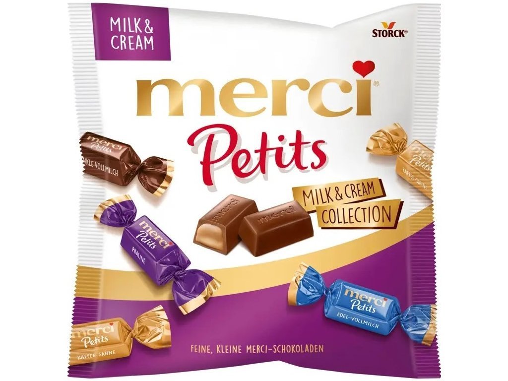 Složení: Cukr, kakaové máslo, sušené plnotučné mléko, kakaová hmota, Sušená smetana, rostlinné tuky (palmový, bambucký), Sušené odstředěné mléko, laktóza, dextróza, mléčný tuk, sušené podmáslí, káva, Emulgátor: lecitiny (sója), kakaový prášek se sníženým obsahem tuku, Mleté lískové ořechy, jedlá sůl, aroma, Obsah kakaové sušiny v bílé čokoládě nejméně 28 %, Obsah kakaové sušiny v mléčné čokoládě nejméně 32 %, Obsah kakaové sušiny ve smetanové čokoládě nejméně 32 %, Obsah kakaové sušiny v mléčné čokoládě nejméně 45 %.