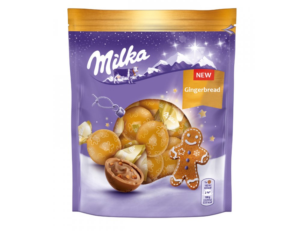Kuličky z mléčné čokolády Milka s oblíbenou vánoční perníčkovou příchutí. Ideální jako součást mikulášského balíčku nebo k drobnému mlsání.