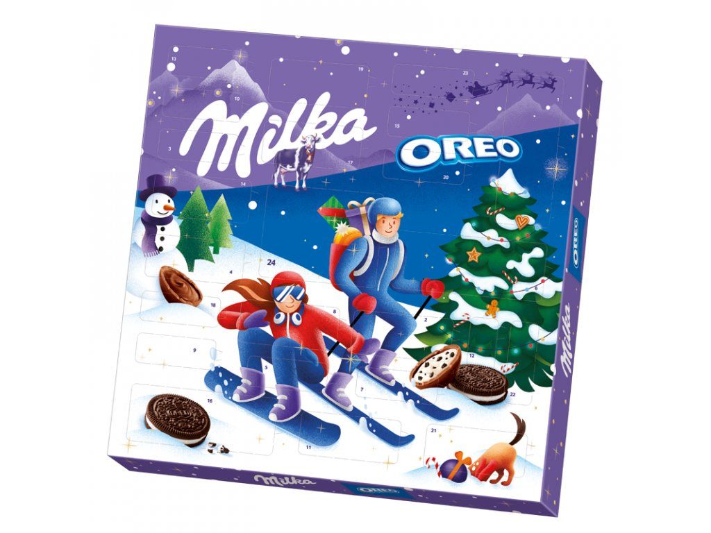 Nezbytné pro všechny fanoušky Oreo. Díky skvělému kalendáři Milka & Oreo Advent vás každý den v prosinci čeká nové lahodné překvapení. Tento speciální kalendář se týká křupavých kakaových sušenek, které jsou nejlépe známé svou lahodnou vanilkovou náplní. Za 24 dveřmi najdete nejen oblíbené sušenky, ale také ty nejlepší čokoládové varianty Oreo z řady Milka. Vzrušující balíček, díky kterému je čekání na Štědrý den trochu sladší.