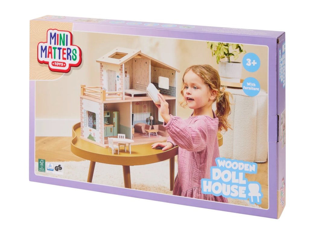 Tento dřevěný domeček pro panenky s nábytkem je skvělá zábava, protože děti mohou vytvářet a hrát své vlastní příběhy. Dům a nábytek z něj opravdu dělají mini domov pro jejich panenky!