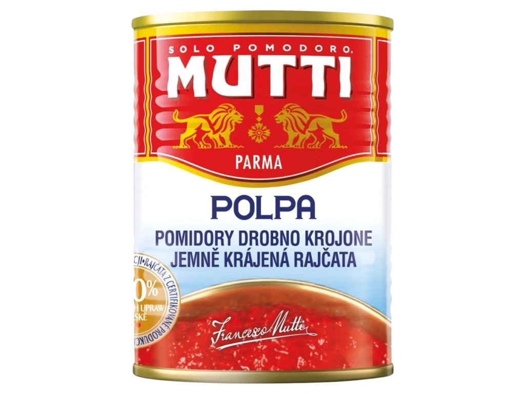 Mutti Polpa v sobě udržuje čerstvost právě posbíraných rajčat. Tento jedinečný produkt kombinuje jemně krájenou dužnatou část rajčat s jejich vlastní šťávou.