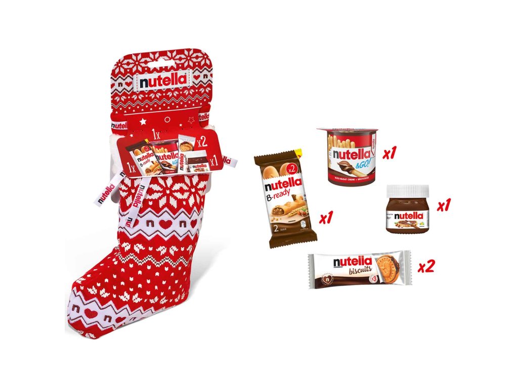 Zimní ponožka Nutella je perfektním dárkem pro všechny fanoušky Nutelly během zimního období. Dekorativní látková ponožka se slavnostním designem je naplněna rozmanitým výběrem oblíbených produktů Nutelly, což zaručuje sladká překvapení. Součástí je praktický kelímek na svačinu s Nutellou s sebou, dvě křupavé tyčinky Nutella B-Ready, lahodná tyčinka Nutella Biscuits a mini sklenička Nutelly na klasickou pochoutku. Ideální jako dárek, vánoční dárek nebo pro rozmazlování se v chladném období. S láskou zabalená bota se vším, po čem Nutellové srdce touží.